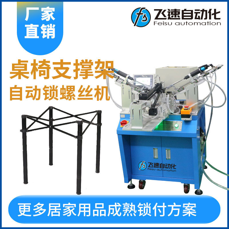 - 產(chǎn)品簡(jiǎn)介: 座椅支撐架自動(dòng)打螺絲機(jī) 座椅支撐架產(chǎn)品是日常生活中都需要用,在生產(chǎn)過(guò)程中支架組裝時(shí)需要用到螺絲來(lái)固定,傳統(tǒng)方式只能一枚一枚地進(jìn)行鎖緊,螺絲鎖附效率低,為了提高鎖固螺絲的速度和質(zhì)量,廠家會(huì)考慮采用自動(dòng)螺絲機(jī)來(lái)替人工操作完成對(duì)工件的鎖固代一方面減輕工人的勞動(dòng)強(qiáng)度,另一方面可以大大提高勞動(dòng)生產(chǎn)率。為此飛速自動(dòng)化為廠家設(shè)計(jì)一款座椅支撐架自動(dòng)上螺絲機(jī),多頭自動(dòng)鎖付,是根據(jù)座椅支撐架來(lái)定制,該設(shè)備能夠多方面同時(shí)鎖付螺絲,采用進(jìn)口伺服系統(tǒng)裝置,鎖付扭力精準(zhǔn),吹氣方向自動(dòng)送料至工件鎖固。設(shè)備操作僅需一名人工,效果提升快,節(jié)省人工。