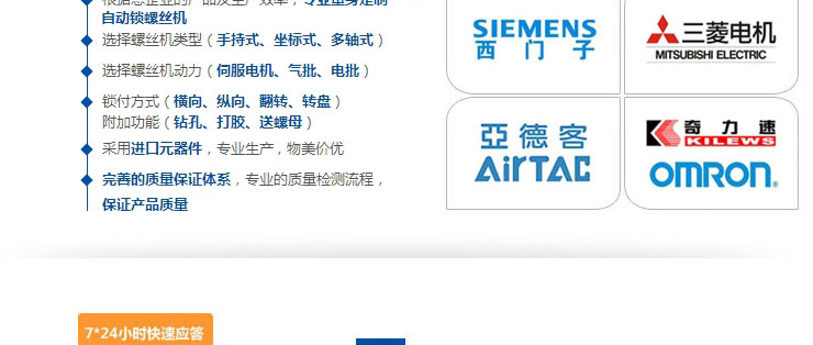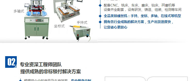 - 產(chǎn)品簡介: 設(shè)備由PLC設(shè)定坐標(biāo)點(diǎn)位,設(shè)備根據(jù)設(shè)定好的坐標(biāo)位置執(zhí)行鎖付任務(wù),配置兩把電批同步鎖付以提升效率,也可以同時(shí)鎖付同一產(chǎn)品不同部位螺絲的鎖付工作。 根據(jù)產(chǎn)品結(jié)構(gòu)設(shè)計(jì)雙平臺多軸自動(dòng)擰螺絲機(jī),設(shè)備由PLC設(shè)定坐標(biāo)點(diǎn)位,設(shè)備根據(jù)設(shè)定好的坐標(biāo)位置執(zhí)行鎖付任務(wù),配置兩把電批同步鎖付以提升效率,也可以同時(shí)鎖付同一產(chǎn)品不同部位螺絲的鎖付工作,在操作過程中設(shè)備能夠?qū)ぜM(jìn)行各項(xiàng)檢測,發(fā)現(xiàn)不良品立即警報(bào),人性化設(shè)計(jì)的自動(dòng)化螺絲機(jī),其操作簡單,搭配流水線工作環(huán)境,雙平臺采用交換作業(yè)臺人機(jī)協(xié)作較好,設(shè)備擰螺絲和人工取放產(chǎn)品分別在不同平臺,輪流作業(yè),人工不停上下料,設(shè)備不停擰螺絲,以解決了企業(yè)大批量生產(chǎn)問題,大大提高了工作效率,降低了人工成本。