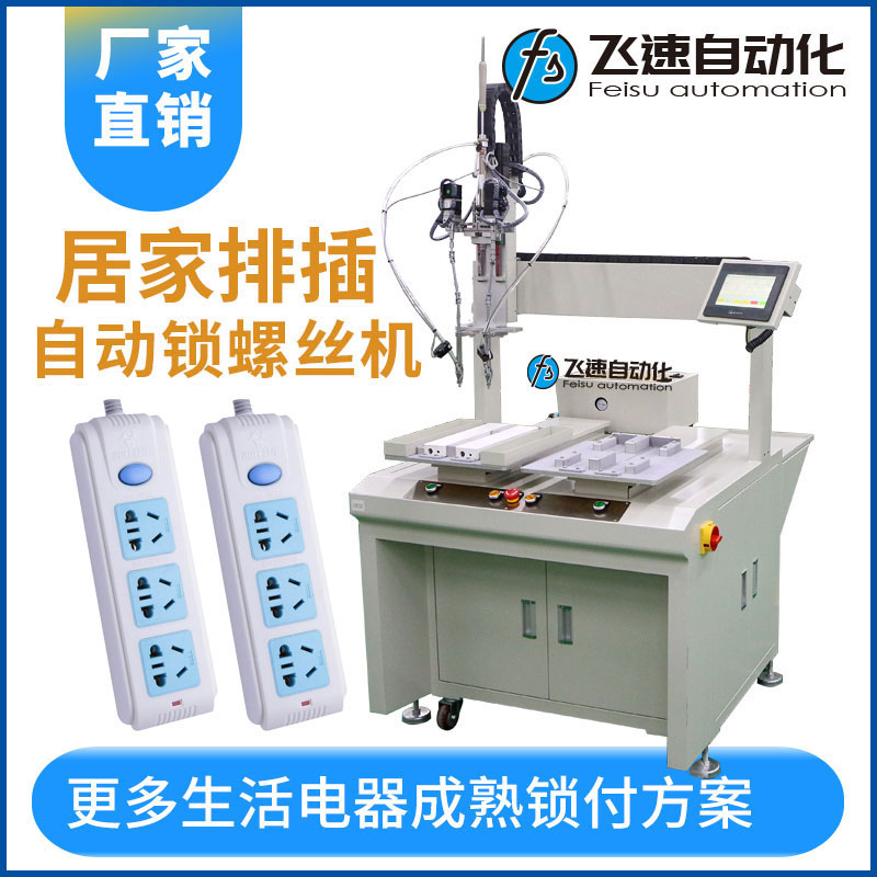 那么排插在生產(chǎn)線進(jìn)行大批量產(chǎn)品生產(chǎn)、加工、裝配時(shí),涉及到螺絲安裝的時(shí)候,需要人工手工完成,人工不僅需要對工件進(jìn)行夾緊定位,還需要人工操作提供螺絲、對螺絲進(jìn)行定位和操作手動(dòng)擰螺絲工具,對操作人員的技術(shù)方面難度加大了一點(diǎn),同時(shí)還會降低加工效率,并且也帶來了大量人工成本的提高等,針對這一問題,飛速自動(dòng)化根據(jù)產(chǎn)品設(shè)計(jì)一臺自動(dòng)加擰緊工螺絲設(shè)備可以在流水作業(yè)時(shí),自動(dòng)輸送、自動(dòng)供料、自動(dòng)夾緊工件、自動(dòng)分螺絲方向、自動(dòng)定位、自動(dòng)找正螺孔、自動(dòng)扭緊的自動(dòng)加工螺絲設(shè)備,以解決人工完成上述操作帶來的產(chǎn)品一致性差、操作效率低以及人工成本高的問題。 排插的外殼體需8顆螺絲鎖付,螺絲類型為內(nèi)十字圓頭螺絲,為提高效率。