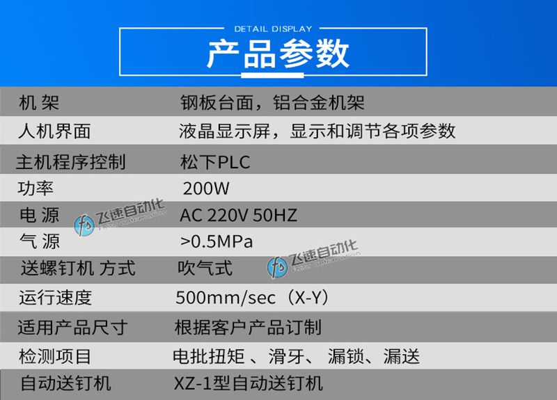 - 產品簡介:雙頭雙工位坐標式螺絲機,可以實現兩個產品一起送鎖,每個產品擰緊螺絲只需要2-3秒即可,助力企業輕松實現高效生產。